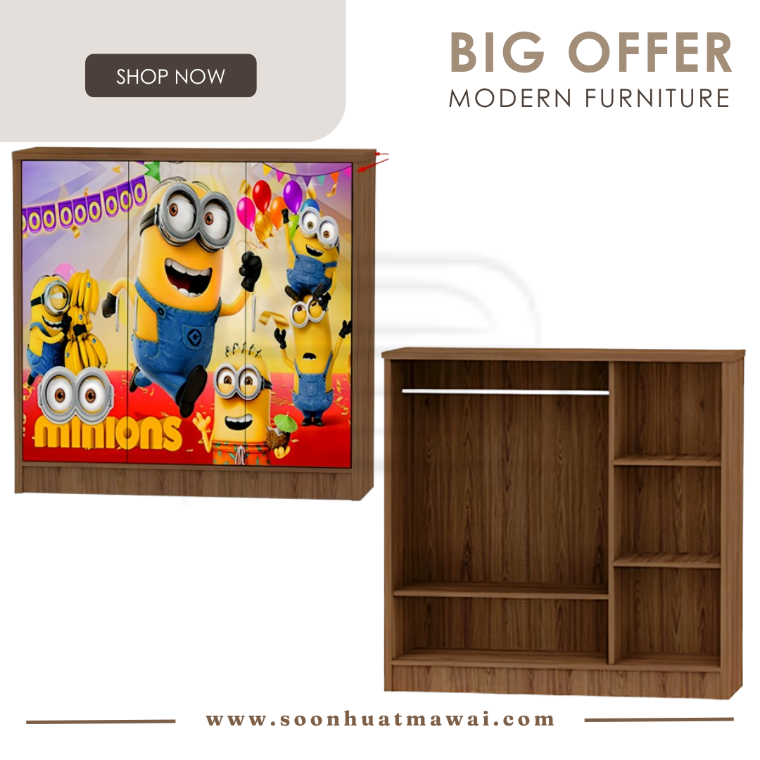 GY 486(M) WARDROBE H119 W119 L39 WARDROBE 3 DOOR CARTOON: MINION GY 486(U) WARDROBE H119 W119 L39 WARDROBE 3 DOOR CARTOON: UPIN&IPIN **DELIVERY NOT INCLUDE