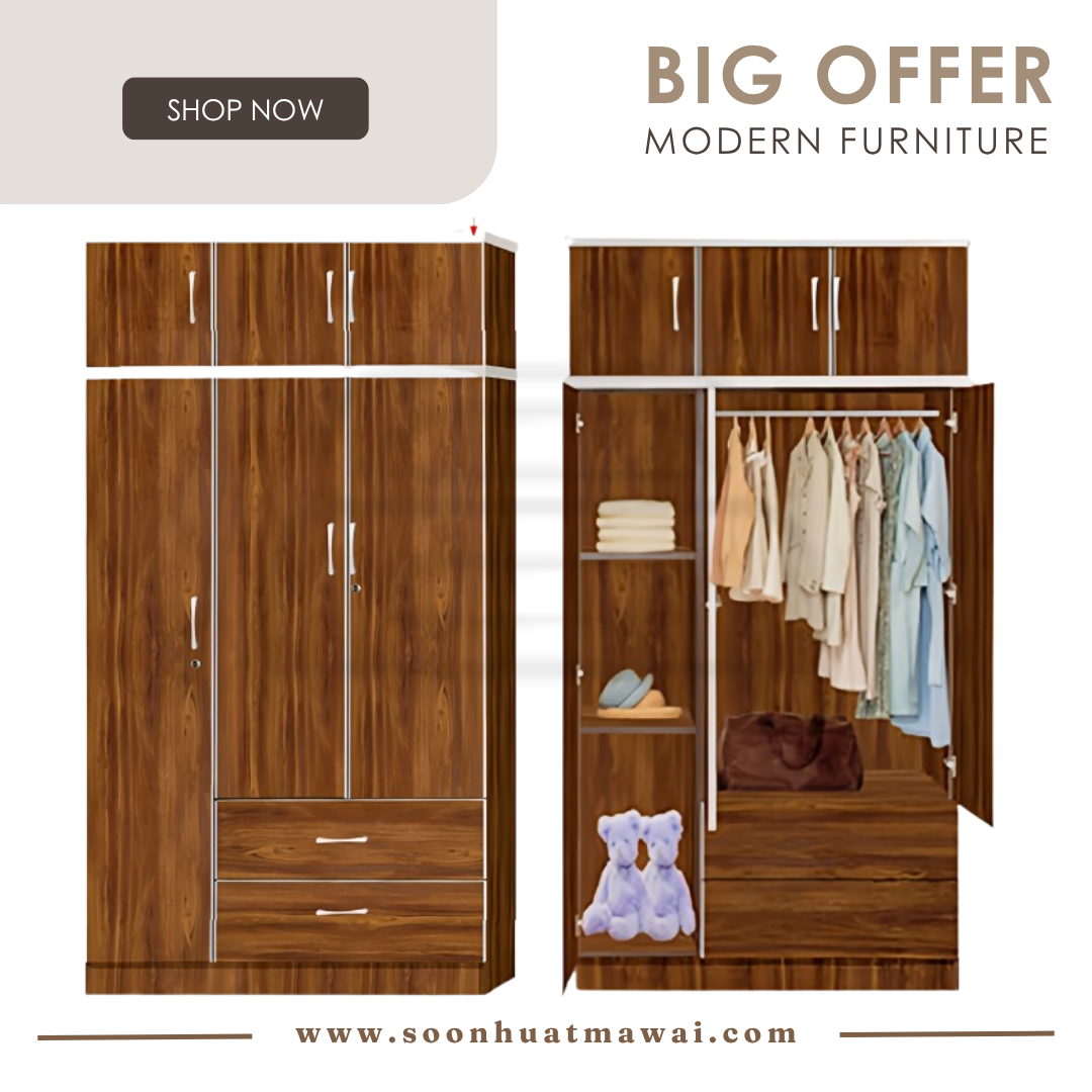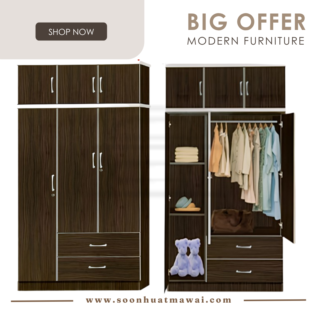 GY 5412+TOP WARDROBE H220 W116 L45 WARDROBE 6 DOOR WITH DRAWER COLOUR: WALNUT GY 6412+TOP WARDROBE H220 W116 L45 WARDROBE 6 DOOR WITH DRAWER COLOUR: WENGE **DELIVERY NOT INCLUDE