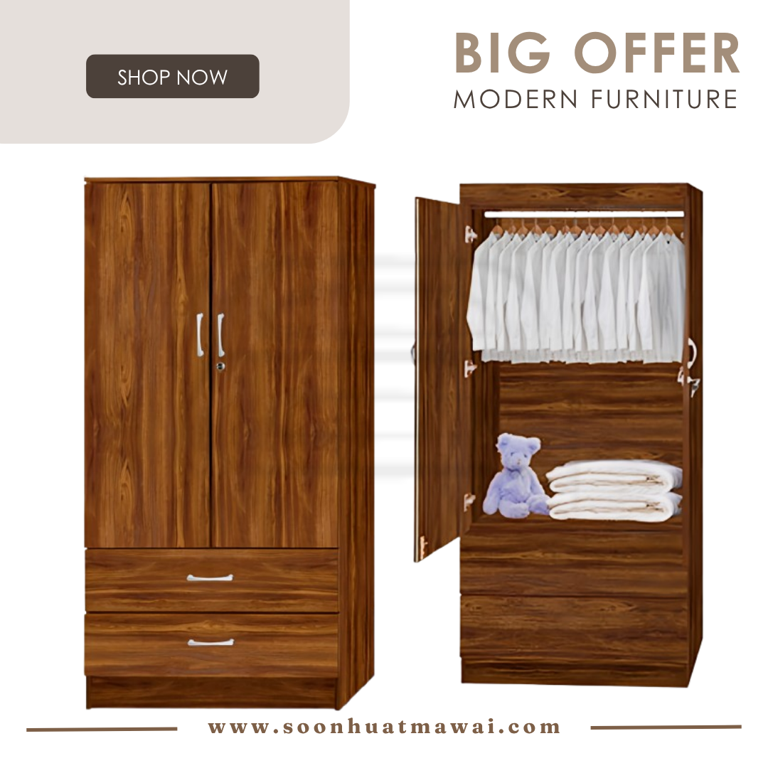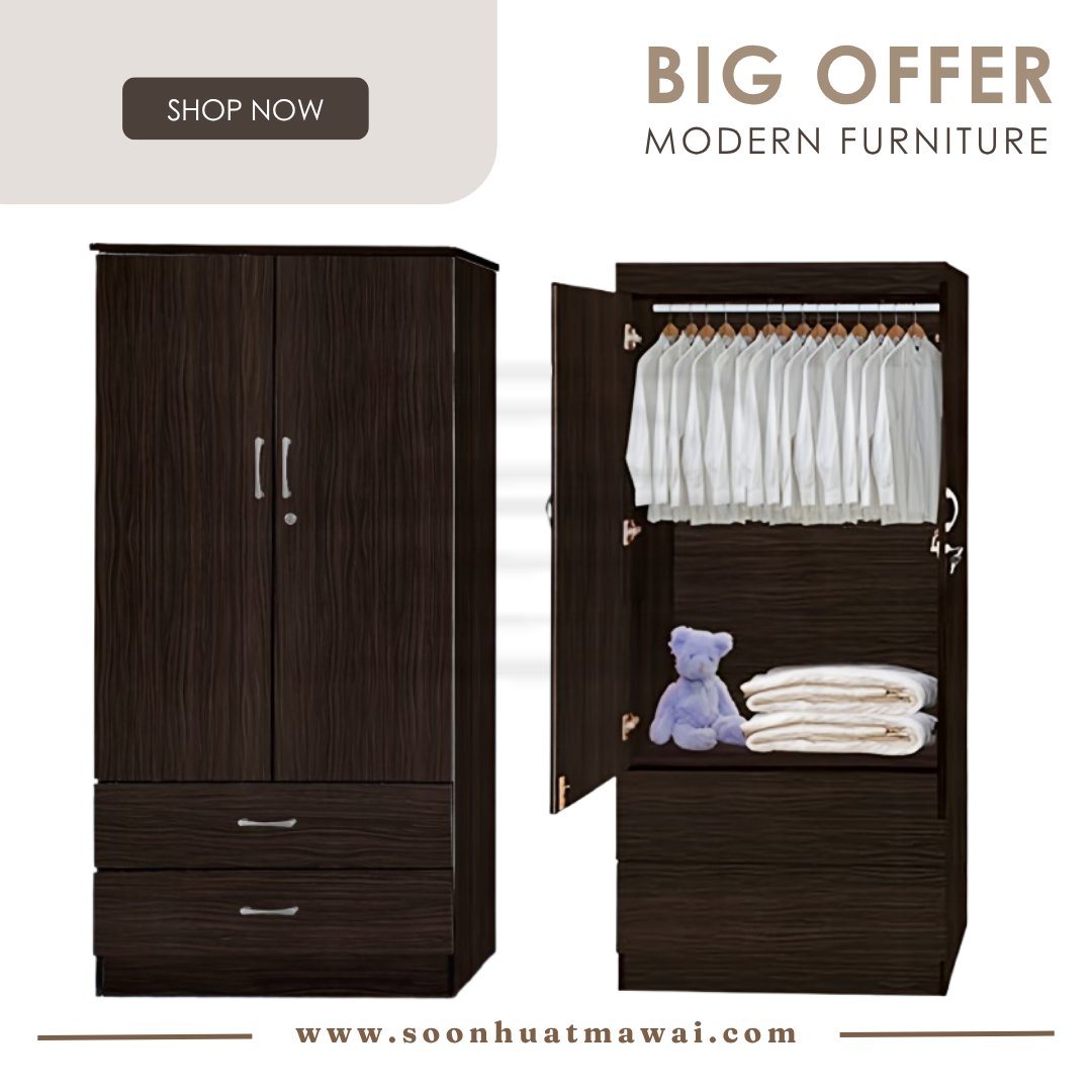 GY 5807KB WARDROBE H177 W78 L40 WARDROBE 2 DOOR + 2 DRAWER (WITHOUT MIRROR) COLOUR: WALNUT GY 8807KB WARDROBE H177 W78 L40 WARDROBE 2 DOOR + 2 DRAWER (WITHOUT MIRROR) COLOUR: WENGE **DELIVERY NOT INCLUDE