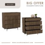 Hamilton Tall Dresser with Sand Black colour leg, Toffee colour body