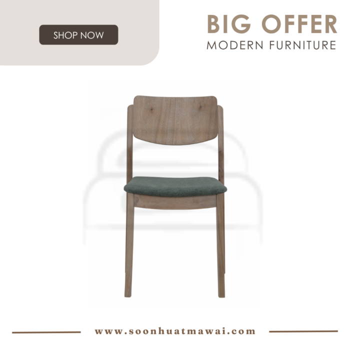 Haru Dining Chair with Navara Ash colour leg, Jade colour Moleen fabric