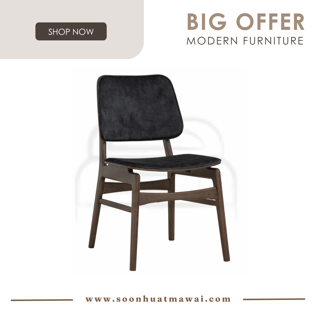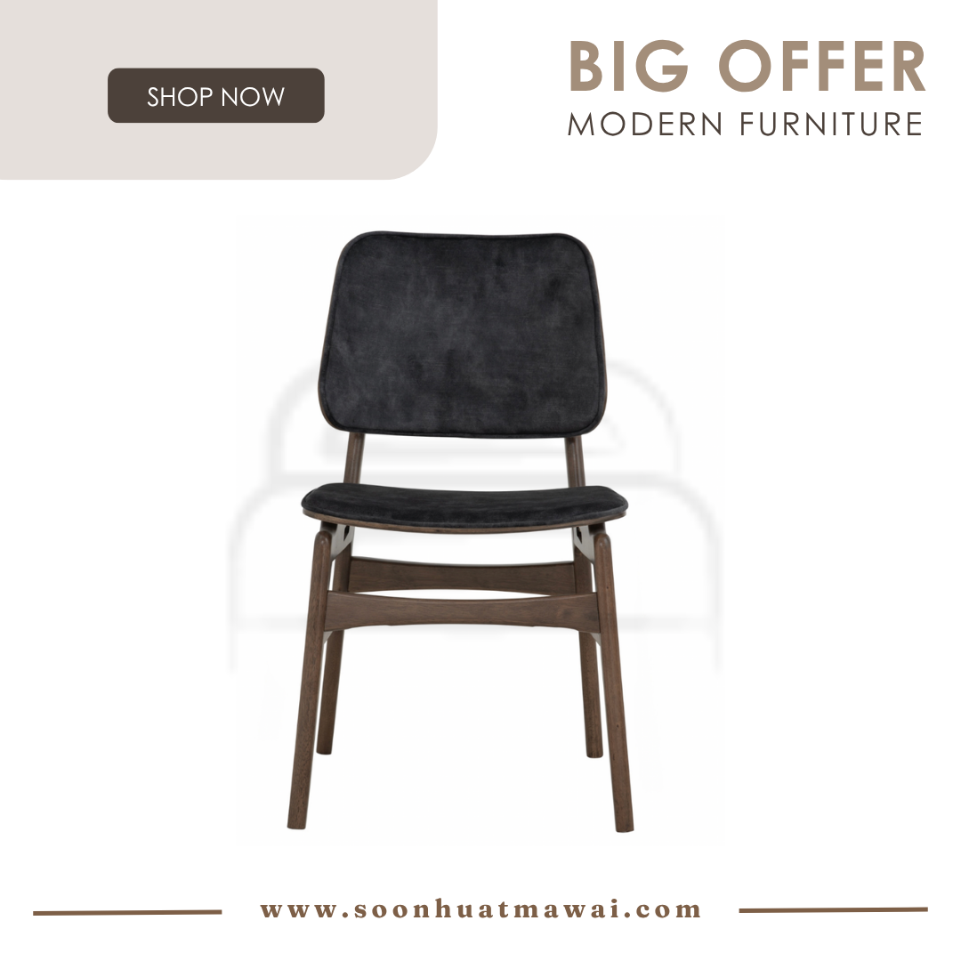 Heath Dining Chair with Cocoa colour leg, Black colour Arctus fabric