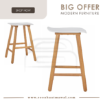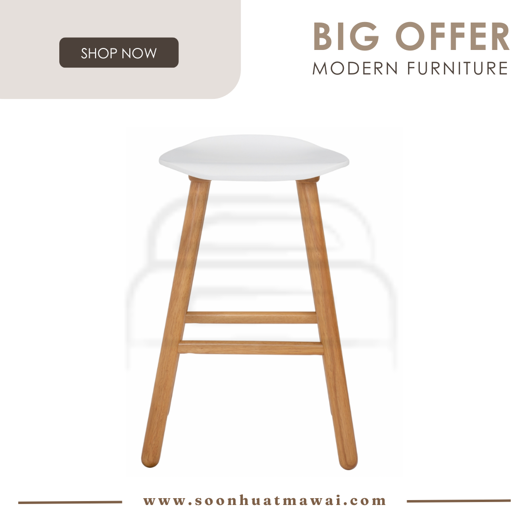 Hetty counter stool in Natural colour leg, White lacquered seat