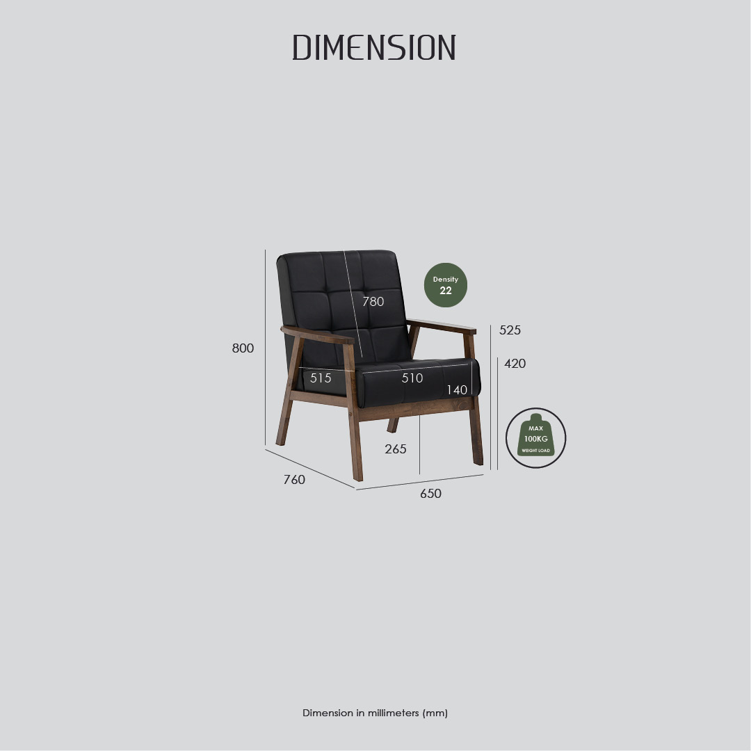Hiace 1 seater sofa in Cocoa colour, Espresso colour Premium Vinyl