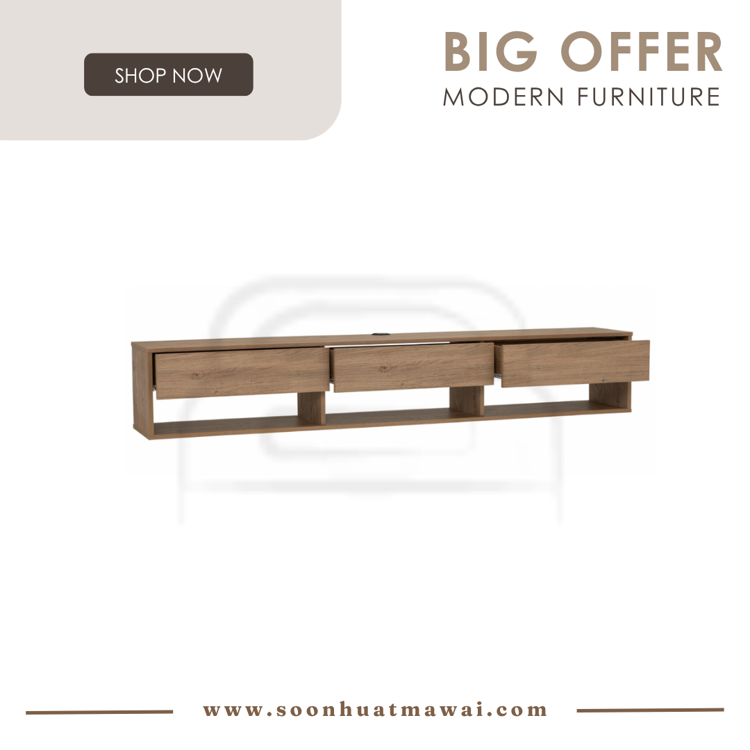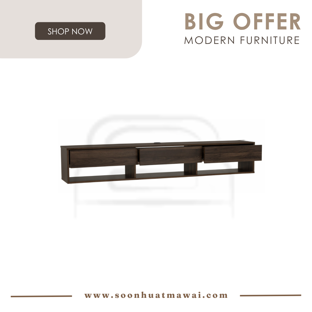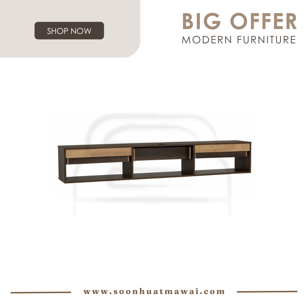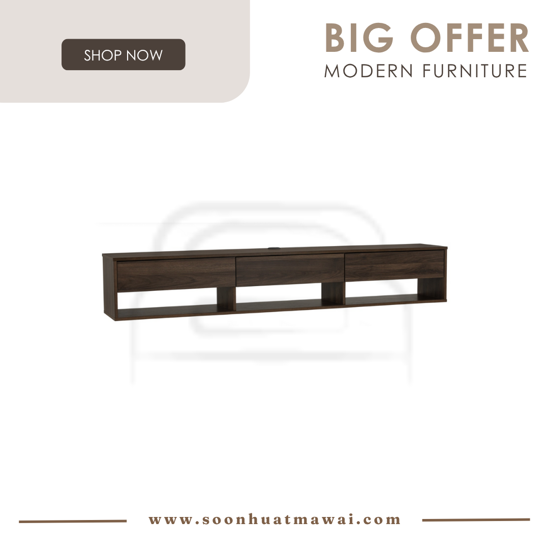 Hirado 1.8m wall tv cabinet with shelf in Walnut colour