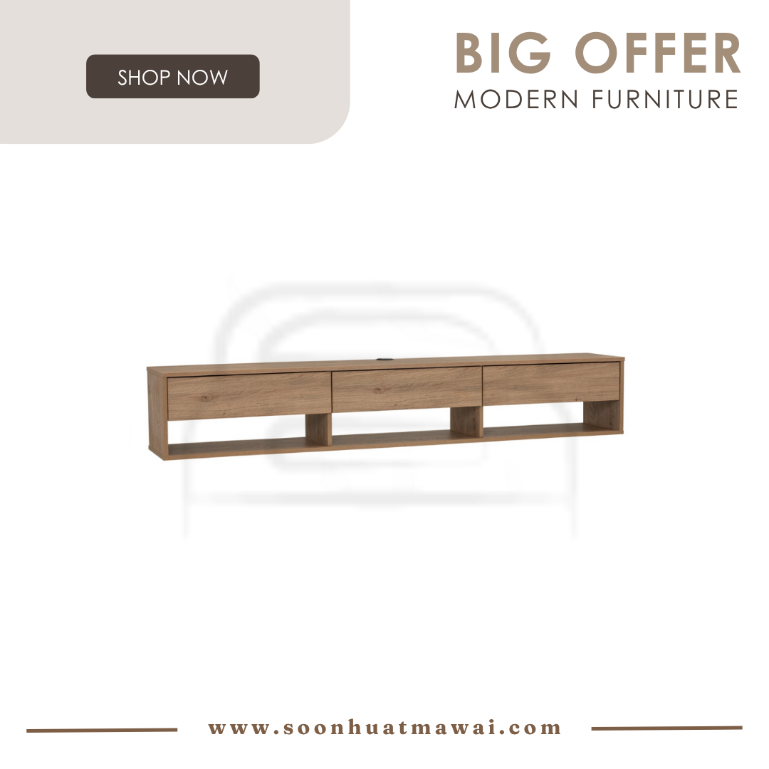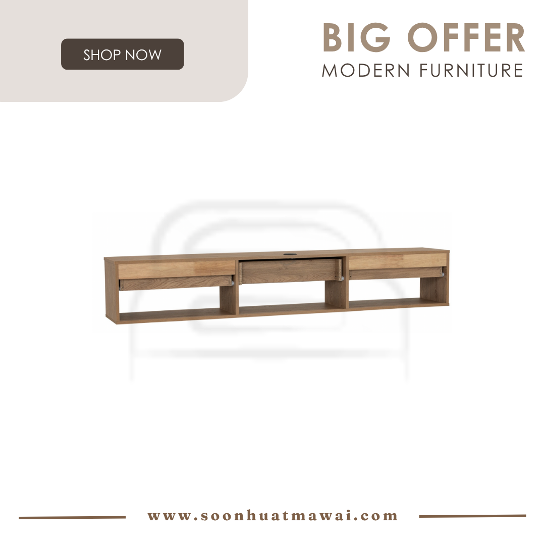Hirado 1.8m wall tv cabinet with shelf in Oak colour
