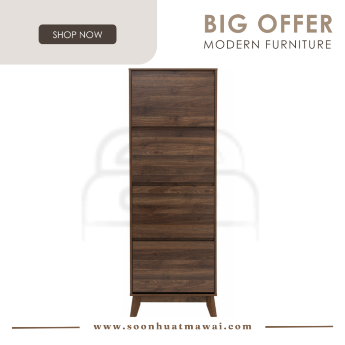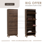 Hirado tall shoe cabinet in Cocoa colour leg, Walnut colour top