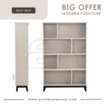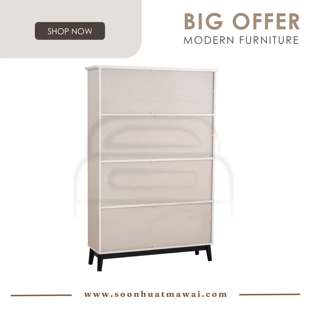 Howell high bookcase in Black colour leg, Light Grey laminate body and White laminate shelf