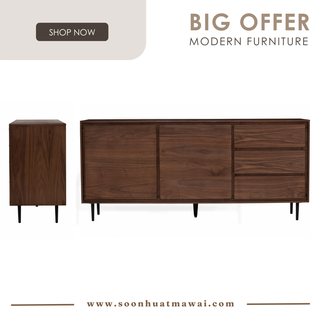 Hutto 1.8M Sideboard Cabinet in Walnut veneer body with Matt Black Epoxy leg