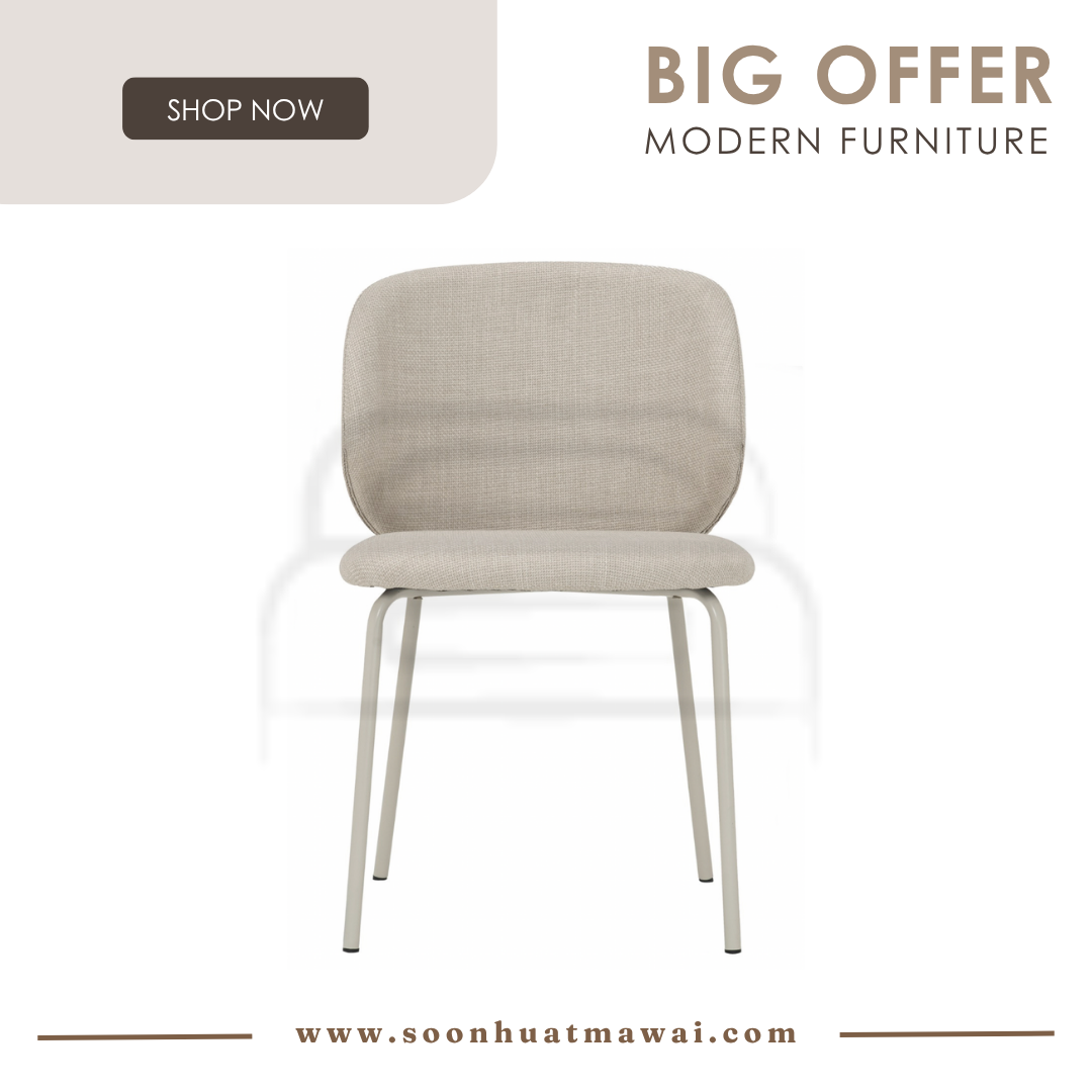Kenzi dining chair in Matt Beige Epoxy colour leg, Beige colour Bjorn fabric