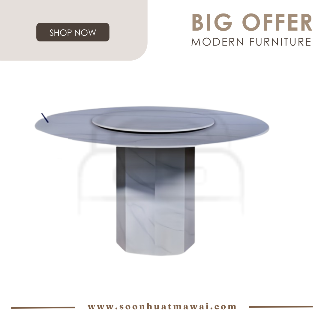 KS11 DINING SET 1+6 156 KS11: L135 D135 H76 156: L54 D58 H91 CAN CHOOSE DESIGN CHAIR: - 156 - 8-66 GREY - 881 - 201