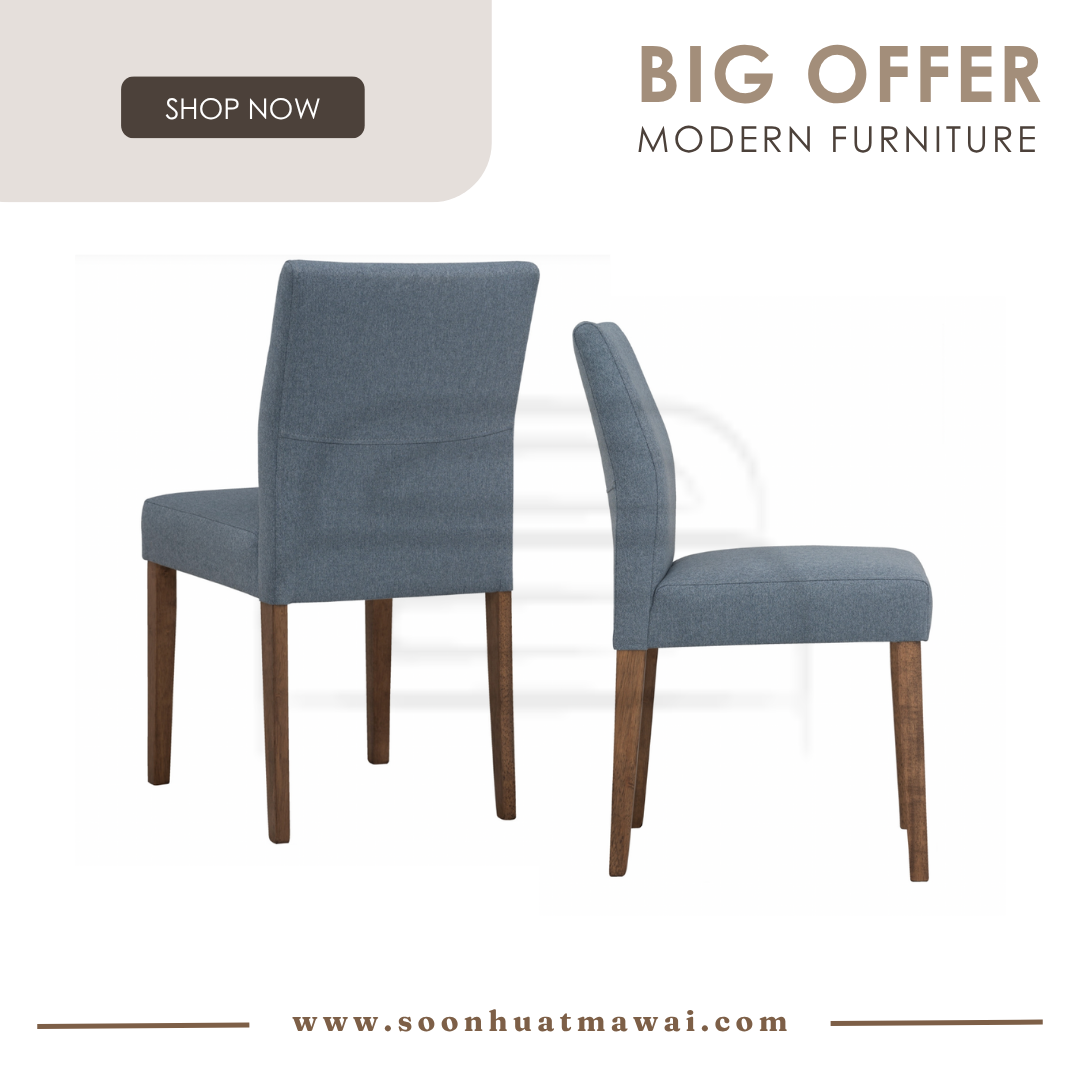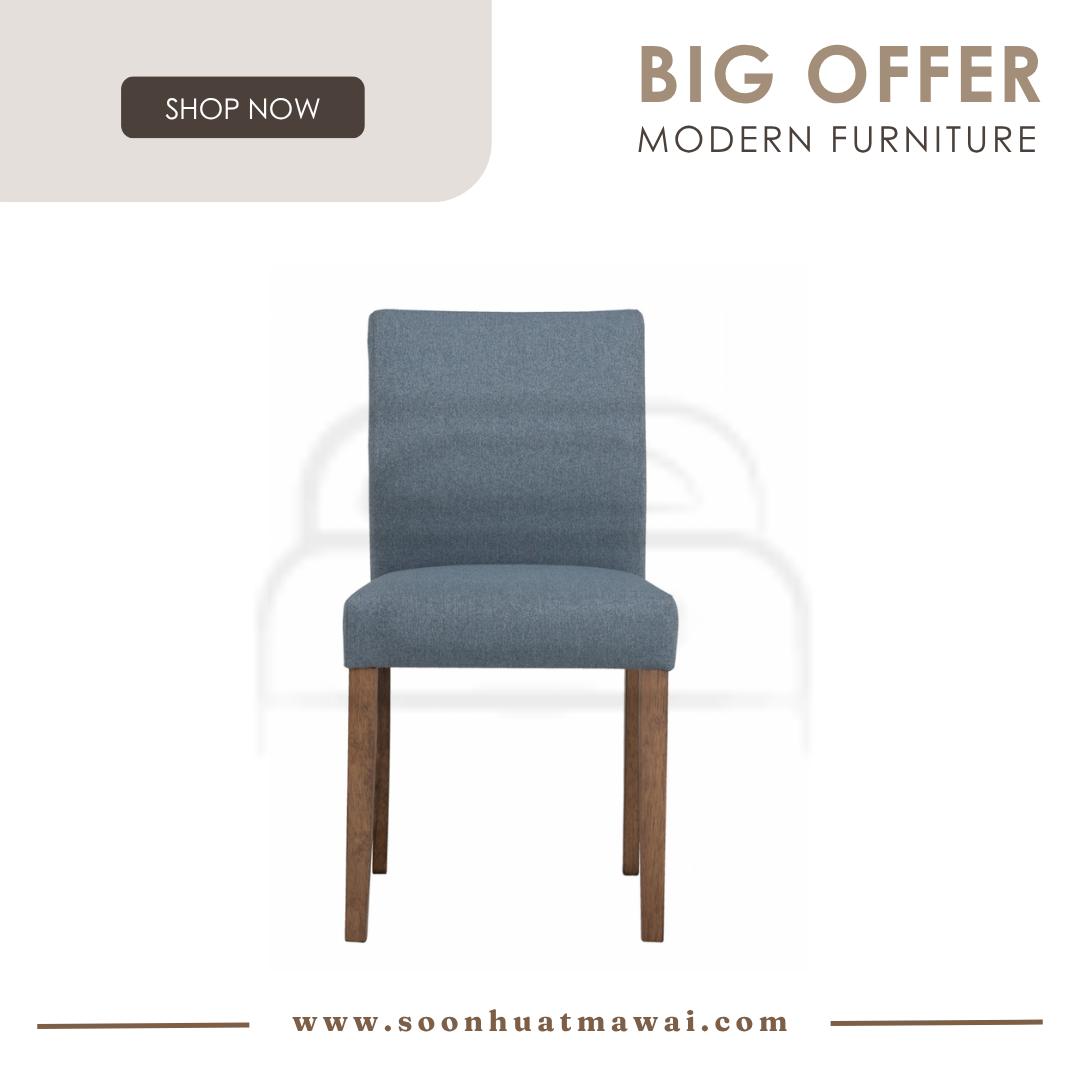 Ladee dining chair in Cocoa colour leg, Steel Blue colour Drill fabric
