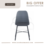 Laxmi dining chair with Matt Black Epoxy leg, Grey colour seat and Battleship Grey colour cushion