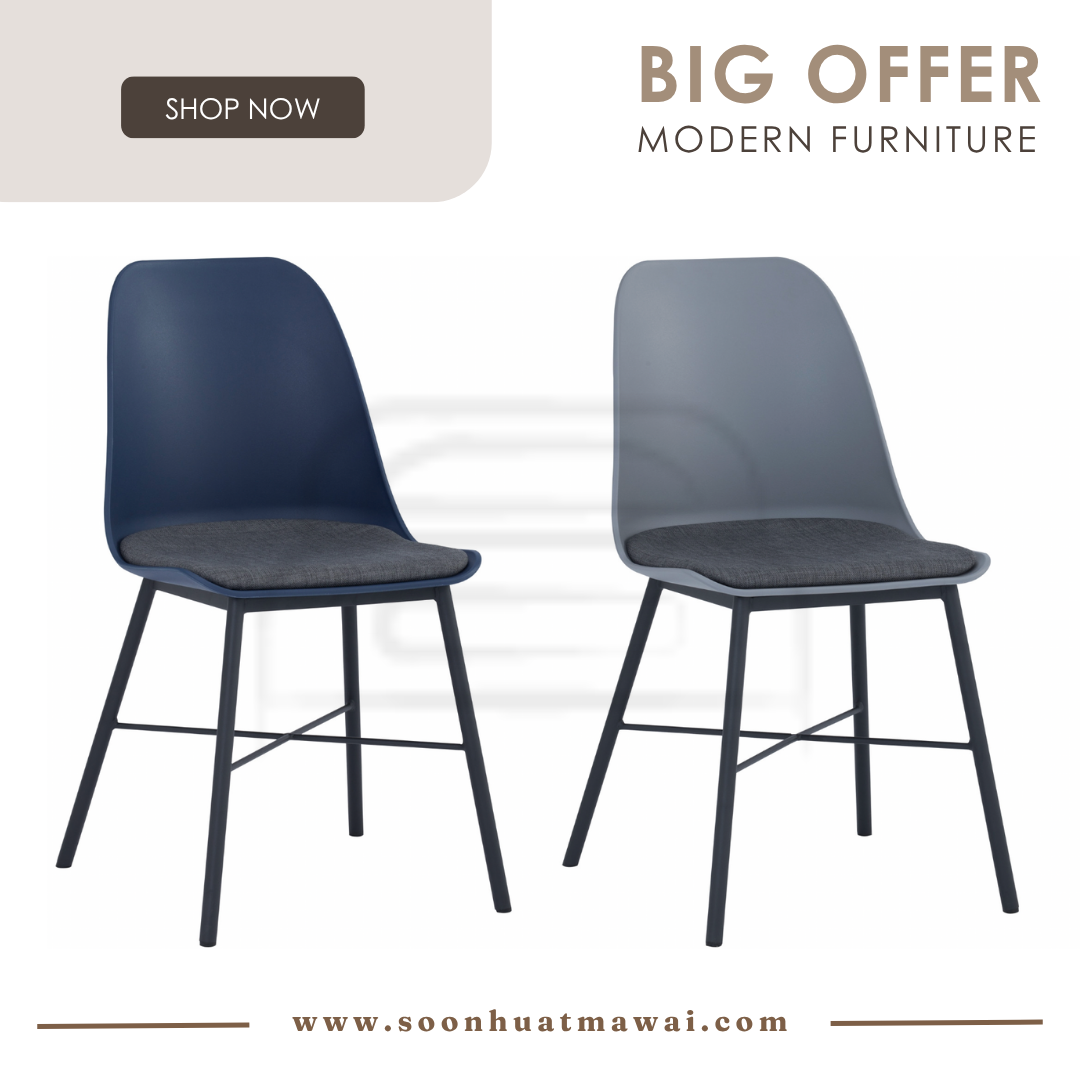 Laxmi dining chair with Matt Black Epoxy leg, Midnight Blue colour seat and Battleship Grey colour cushion