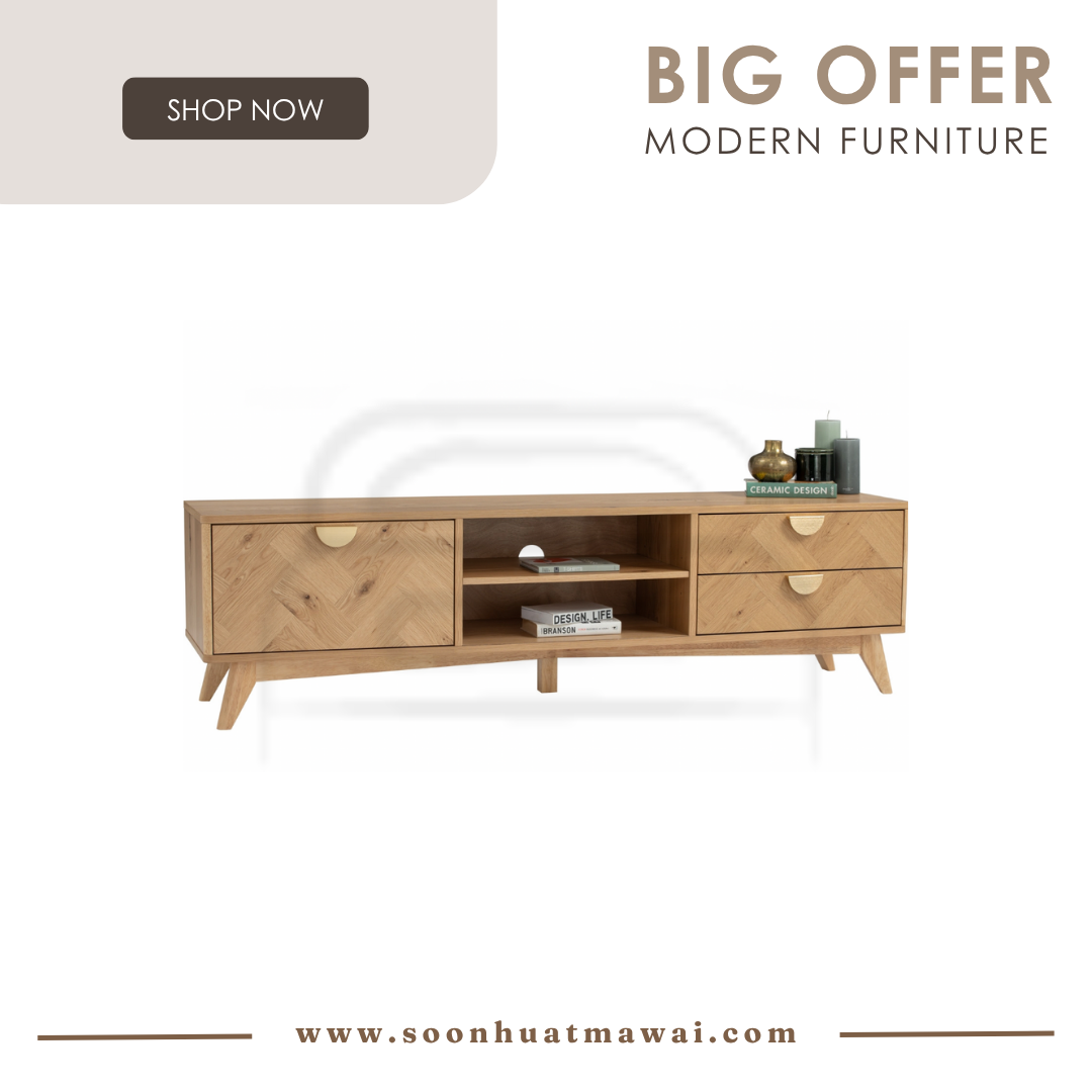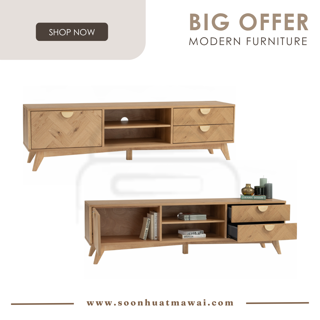 Loftus 1.8M TV Cabinet in Oak veneer body with Natural colour leg
