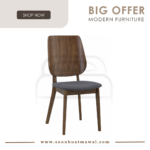 Lotfi dining chair in Cocoa colour frame, Battleship Grey colour Challis fabric seat