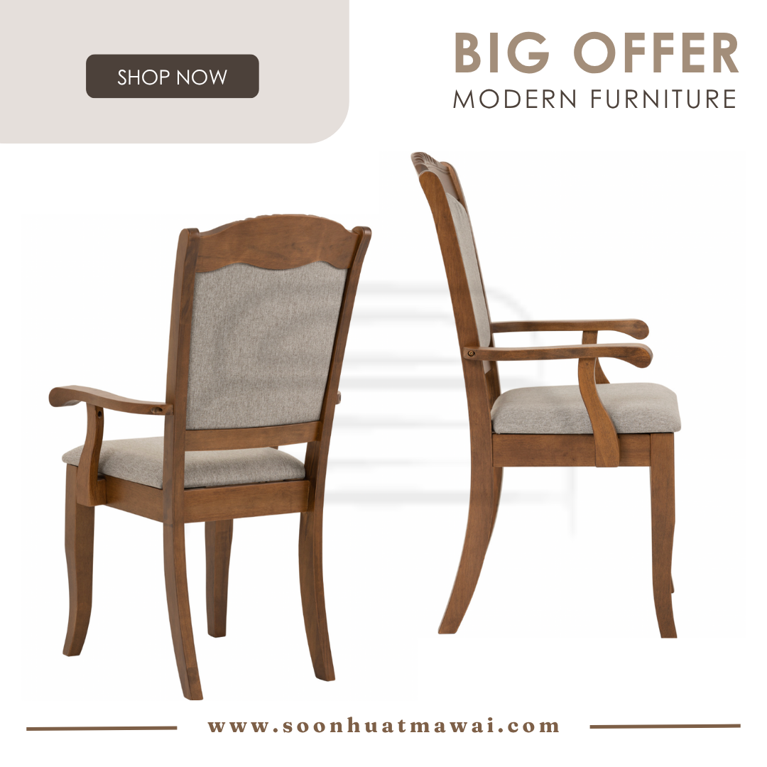 Lotum arm chair in Cocoa colour frame, Dolphin colour Dimity fabric