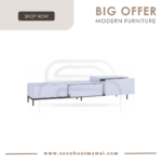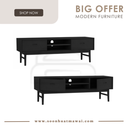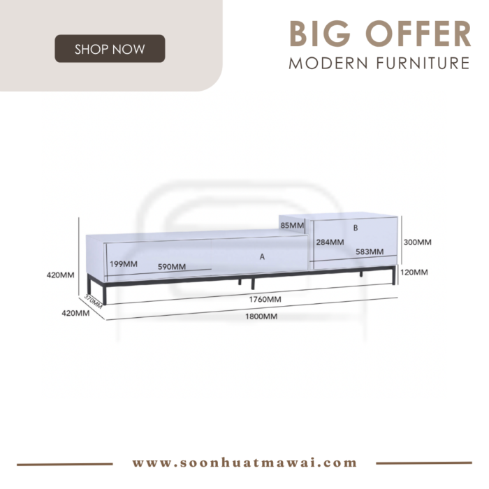 Lowell 1.8M TV Cabinet in White colour body with Matt Black Epoxy leg