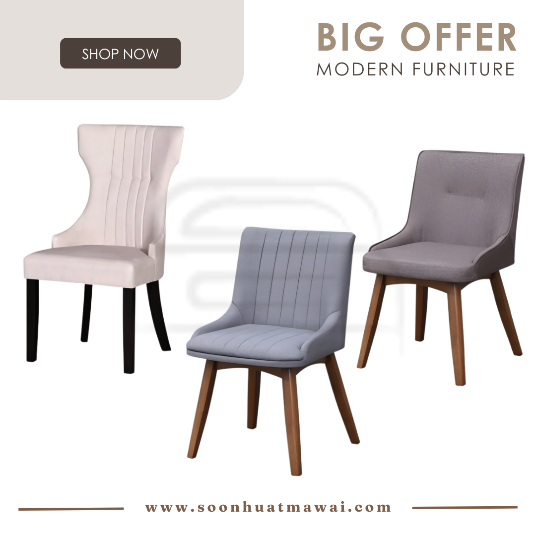 LS01 DINING CHAIR L53 D63 H99 COLOUR: BEIGE MJ15 DINING CHAIR L53 D63 H89 COLOUR: GREY MJ31 (BROWN) DINING CHAIR L53 D63 H89 COLOUR: BROWN ***AT LEAST BUY 2 PCS FOR EVERY PURHASE