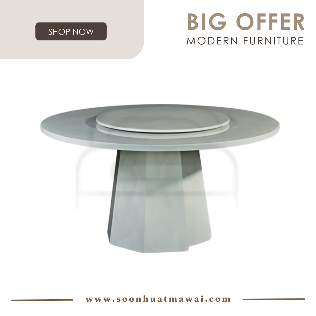 M2113R DINING SET 1+6 095 (MZ-5)(BEIGE) M2113R: L135 D135 H76 095: L45 D56 H90 CAN CHOOSE DESIGN CHAIR: - 095 (MZ-5)(BEIGE) - 8-66 GREY - 022 - J-C201