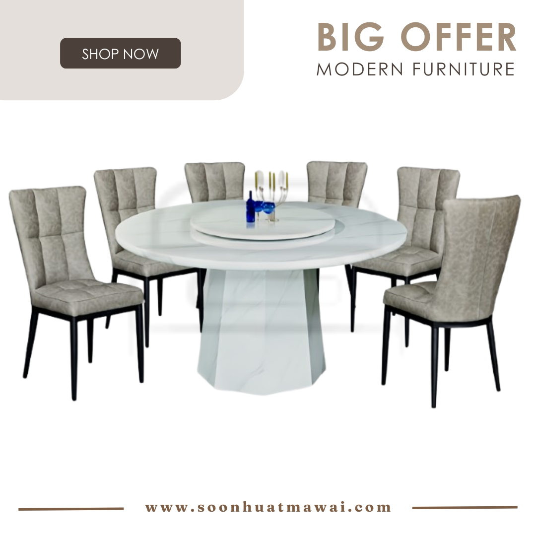 M2115R DINING SET 1+6 J-C8-7 (GREY) M2115R: L135 D135 H76 J-C8-7: L50 D59 H97 CAN CHOOSE DESIGN CHAIR: - J-C8-7 (GREY) - 815 LIGHT GREY - 881 - J-C211