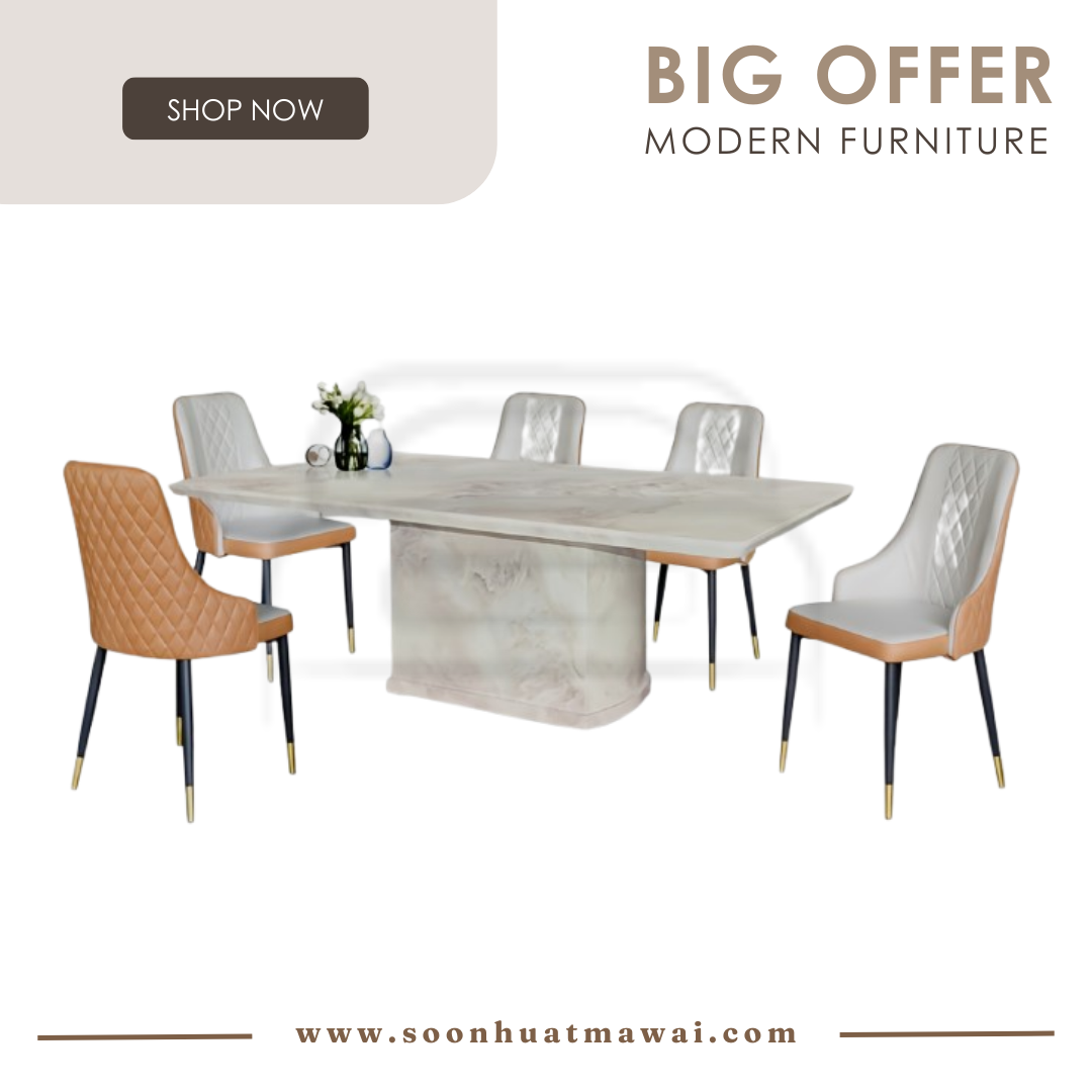 M2119 DINING SET 1+6 DC249 (BEIGE) M2119: L180 D100 H76 DC249: L51 D55 H95 CAN CHOOSE DESIGN CHAIR: - DC249 (BEIGE) - J-C8-7 (GREY) - 2023-45 - SK111 (BEIGE)