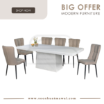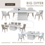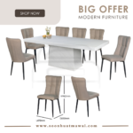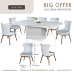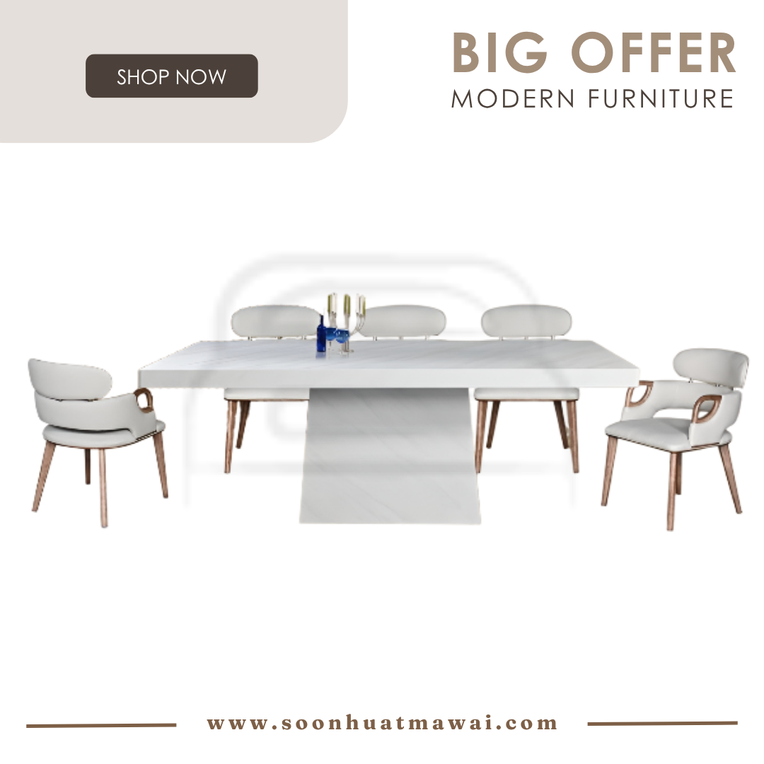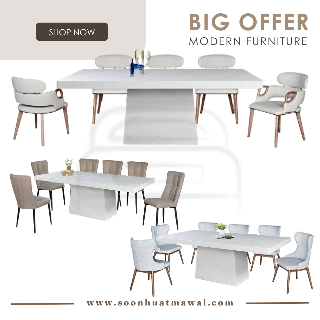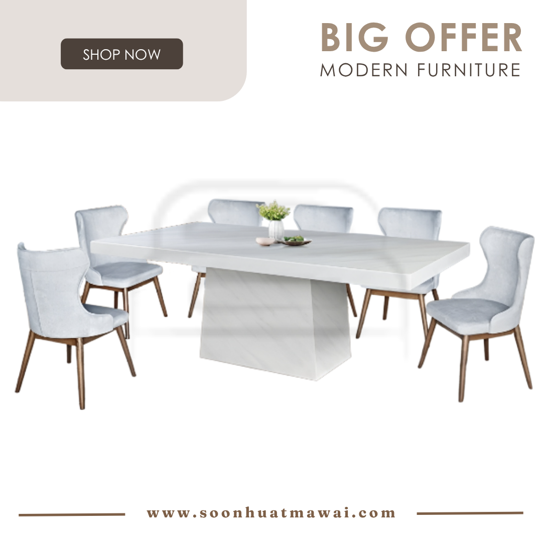 M2147 + C291 / J-C8-8 / MJ154 DINING SET 1+8 M2147 L210 D110 H76 MARBLE DINING TABLE C291 (PU) L60 D55 H80 DESIGN CHAIR CAN CHOOSE: - J-C8-8 (BROWN)(FABRIC) L47 D58 H96 - MJ154 (RKE 001 MISTY)(GREY) L57 D58 H93 **DELIVERY NOT INCLUDE