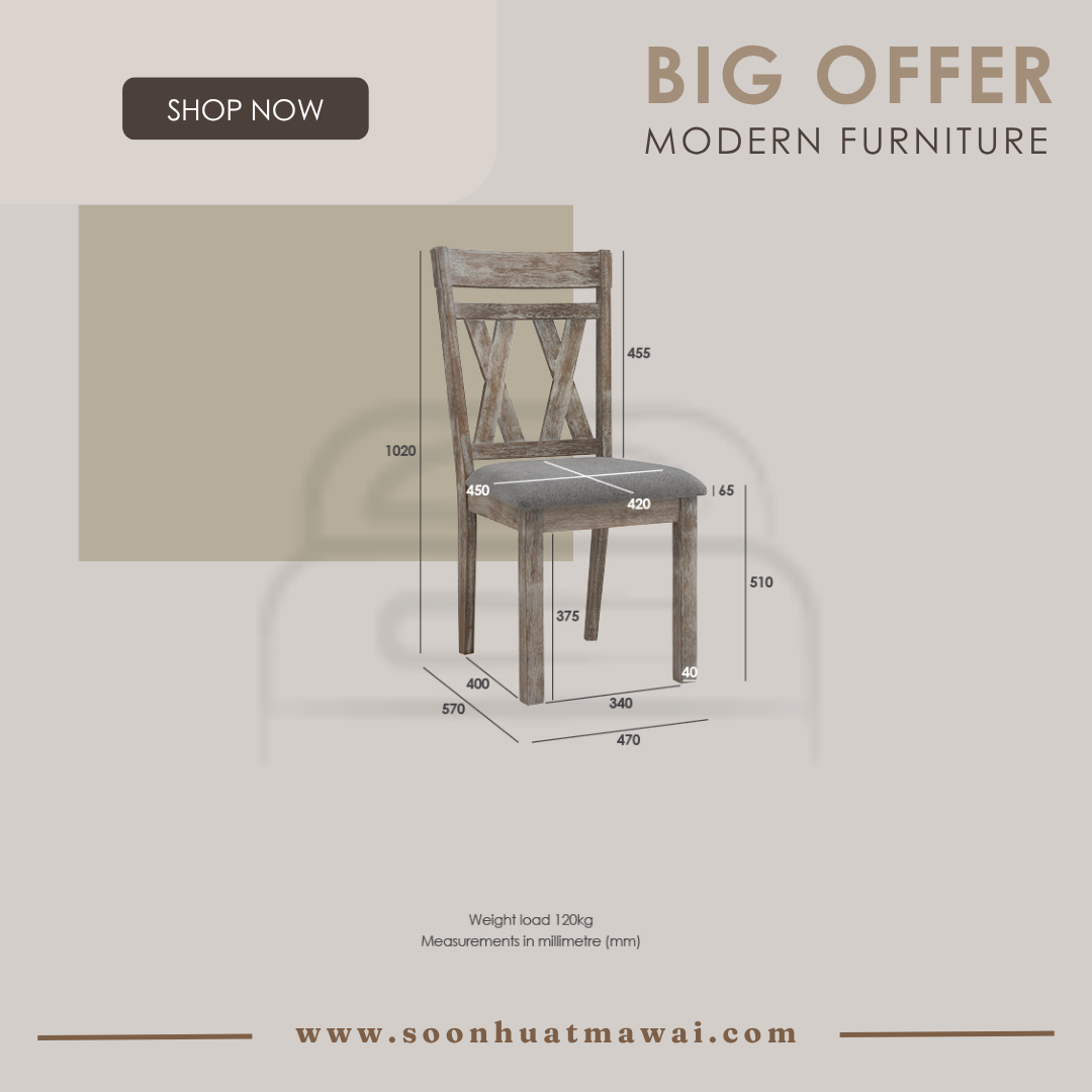 Madrid Dining Chair with Navara Ash colour frame, Grey colour Bruta fabric seat