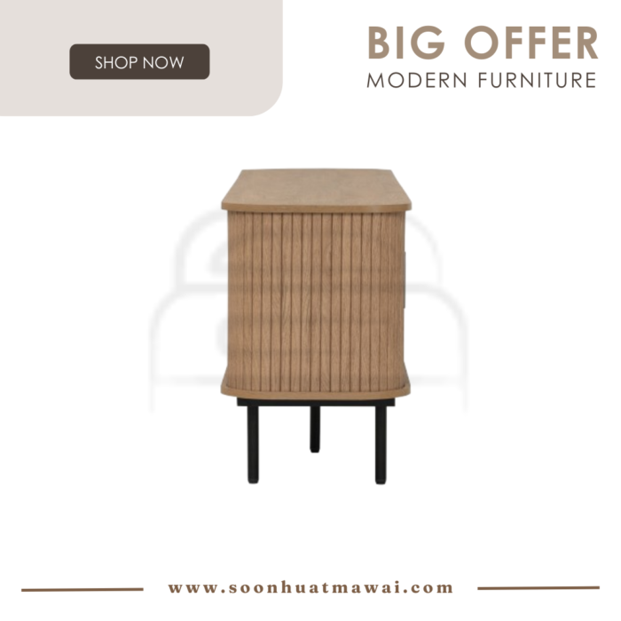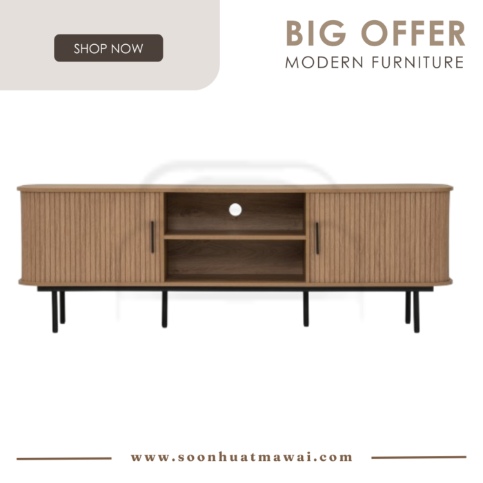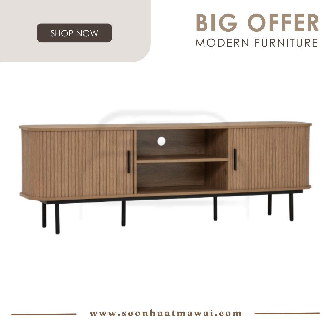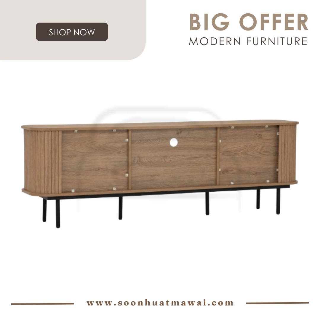 MALMO 1.8M TV CABINET 802/173 Materials CABINET LEG: METAL CABINET BODY: LAMINATED BOARD Colours CABINET LEG: 802 MATT BLACK EPOXY CABINET BODY: 173 OAK Specification Dimension (mm): W1800 D400 H600 Gross Weight (kg): 37.00 m³: 0.0764 Pack Type: 1PC/CTN Assembly Type: KD (KNOCK DOWN) Carton Dimension (mm) 336103: L1850 W430 H96