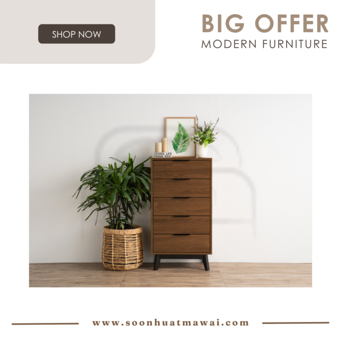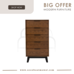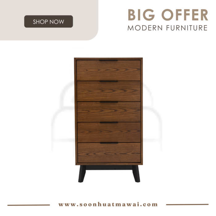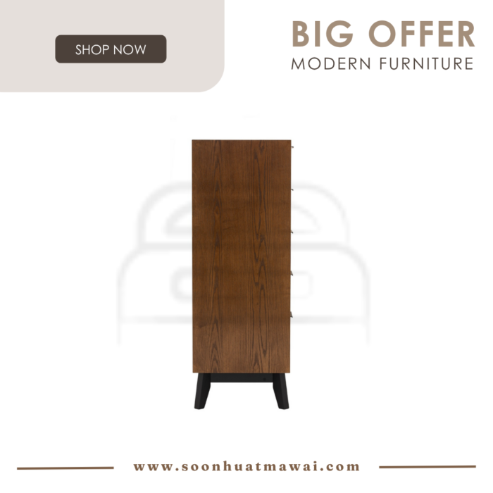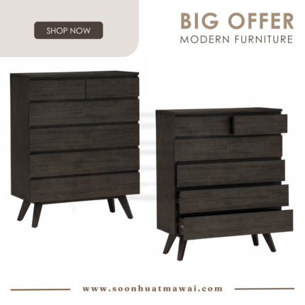 Malton 5 drawer dresser in Black colour leg, Cocoa colour body