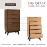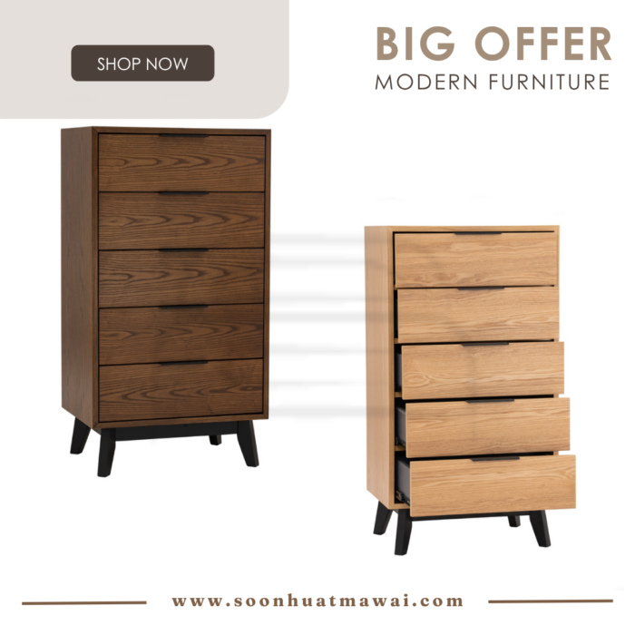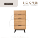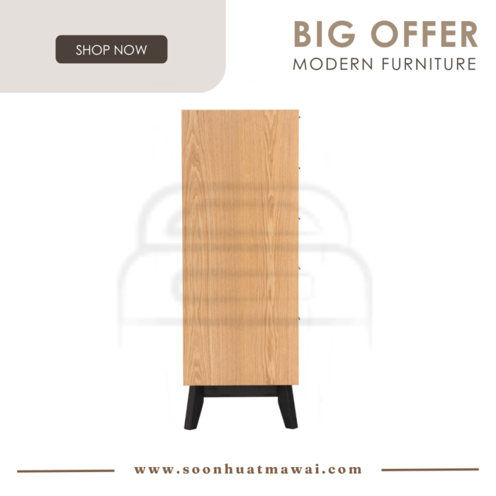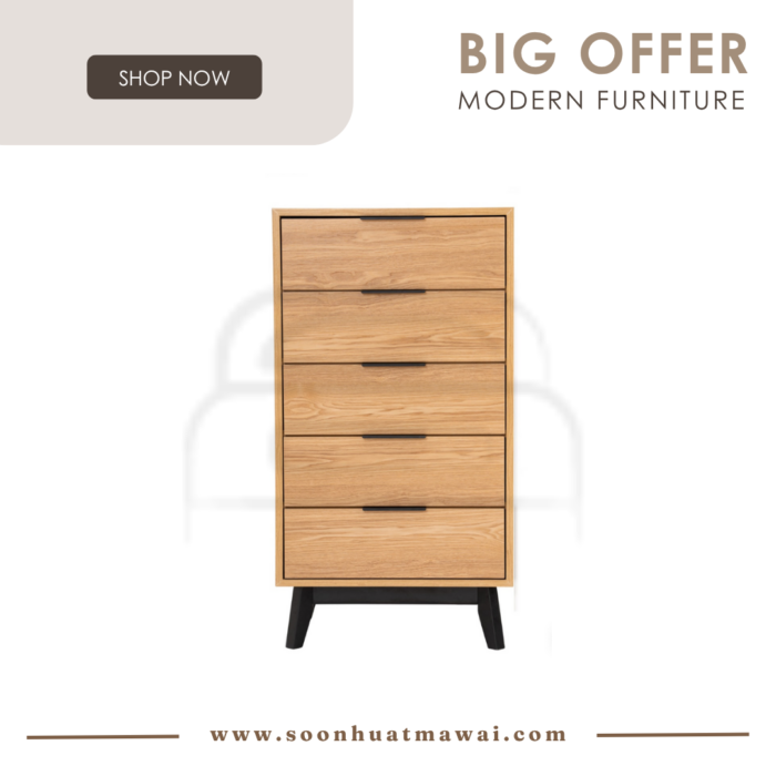 Malton 5 drawer dresser in Black colour leg, Natural colour body