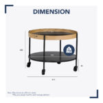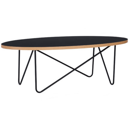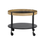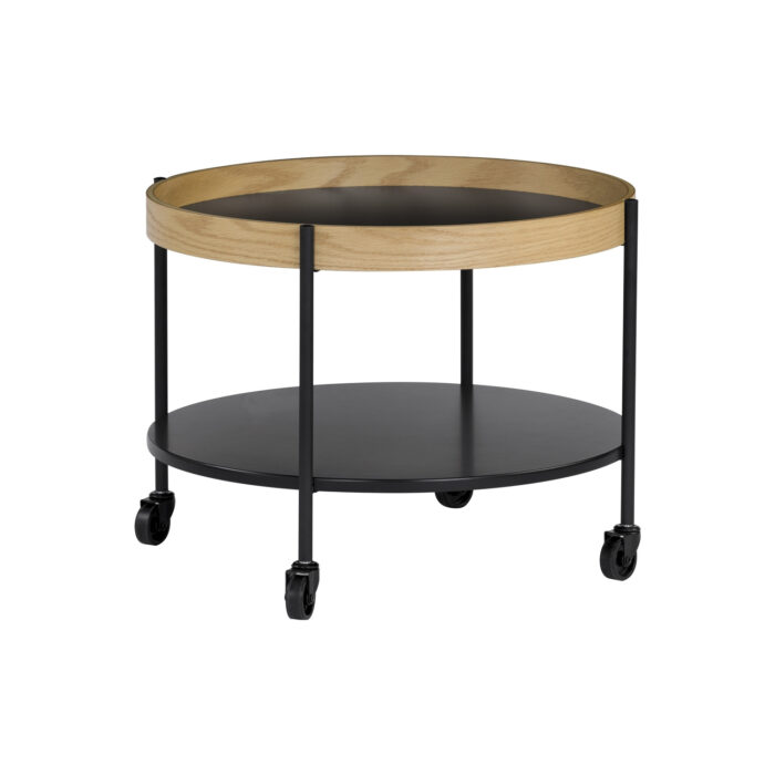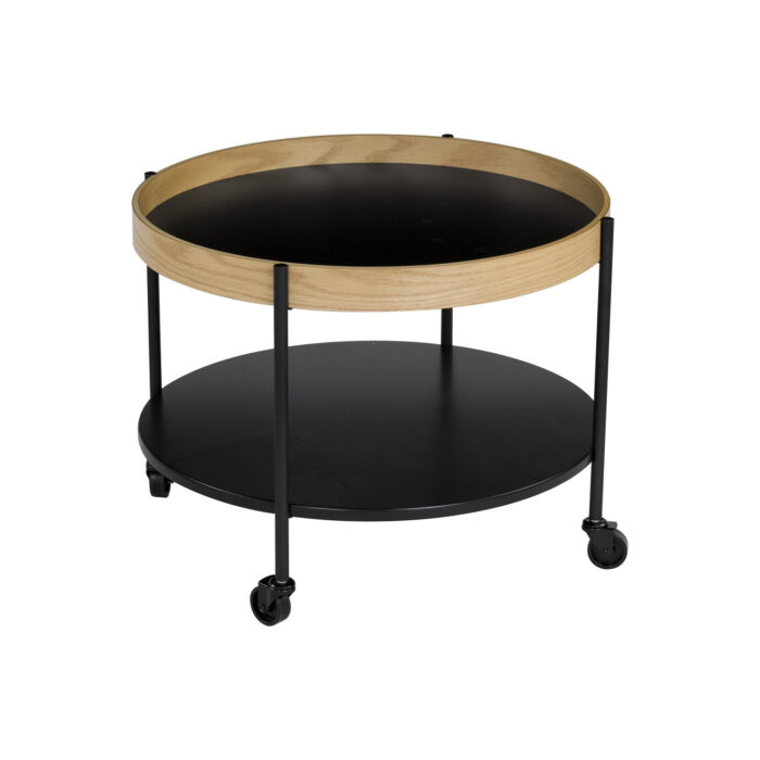 Mendel round coffee table with Black colour top and Oak veneer frame, Matt Black Epoxy leg