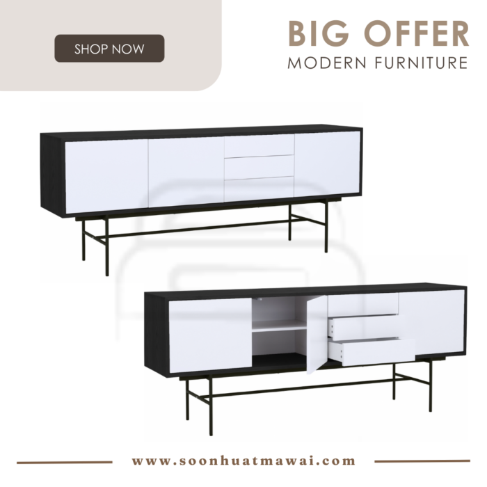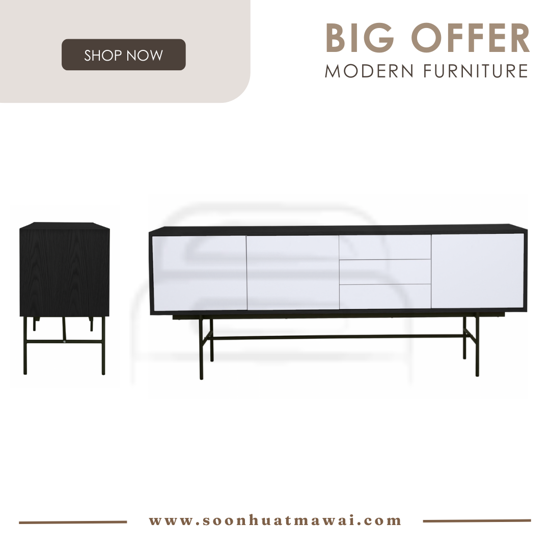 Miller 2.0M Sideboard in Black colour veneer body, White colour door with Matt Black Epoxy colour leg