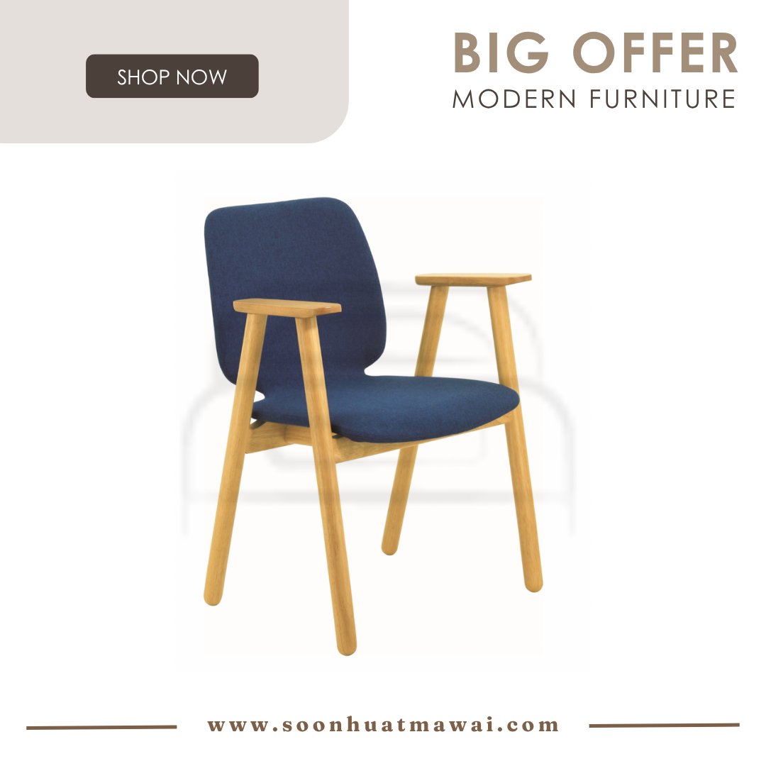 Missie arm chair in Natural colour leg, Midnight Blue colour Dimity fabric