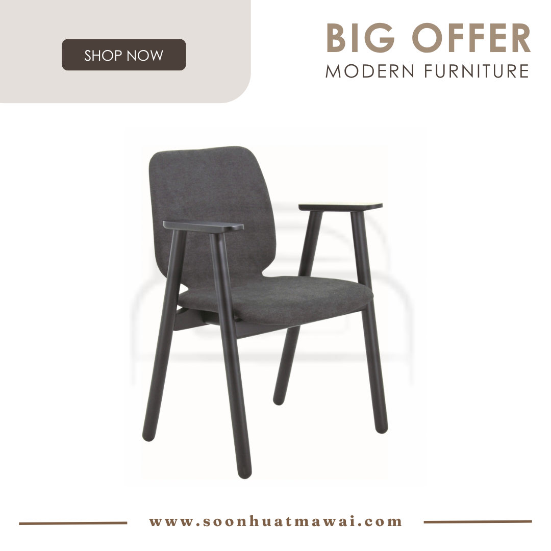 Missie arm chair in Black colour leg, Dark Grey colour Jersey fabric frame