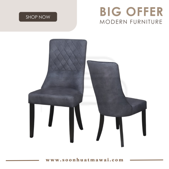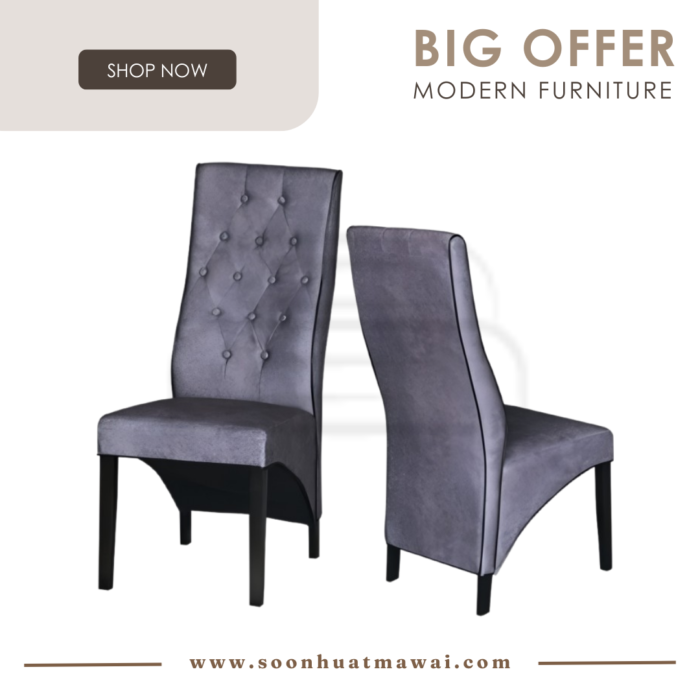 MJ76 (LV006) DINING CHAIR L47 D67 H104 COLOUR: GREY MJ78 DINING CHAIR L52 D61 H101 COLOUR: GREY ***AT LEAST BUY 2 PCS FOR EVERY PURHASE
