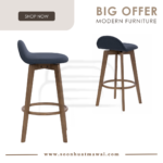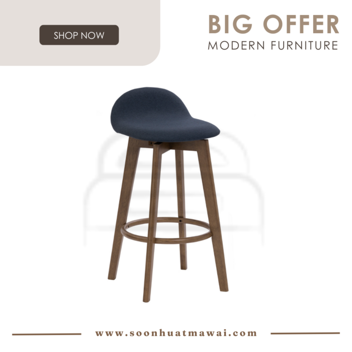 Mora bar chair in Cocoa colour frame, Navy colour Challis fabric seat