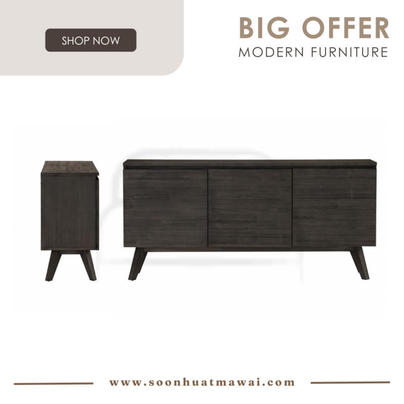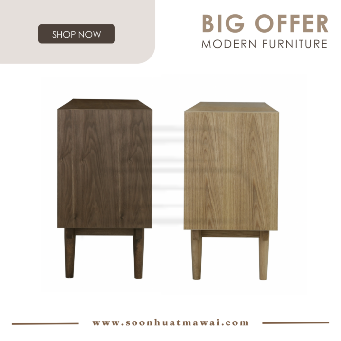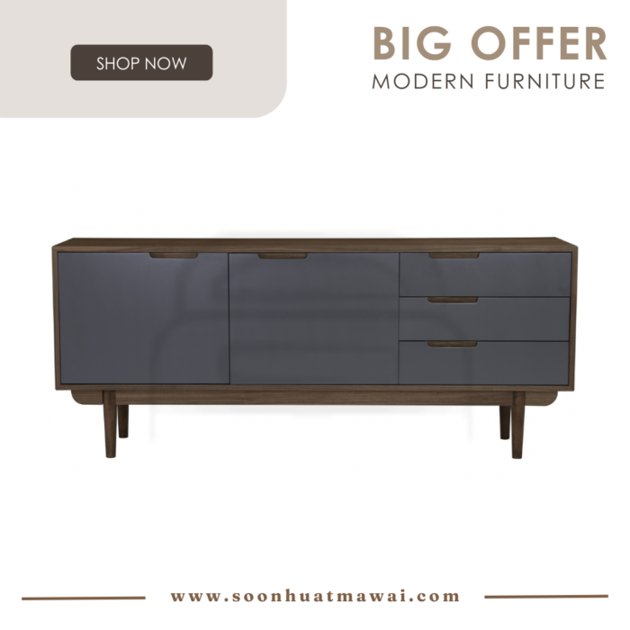 Nakula 1.8M Sideboard in Walnut veneer body, Gunmetal Grey colour door with Walnut colour leg