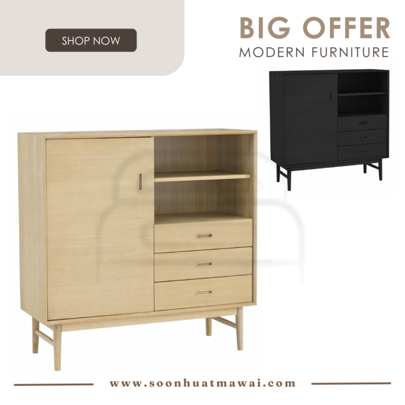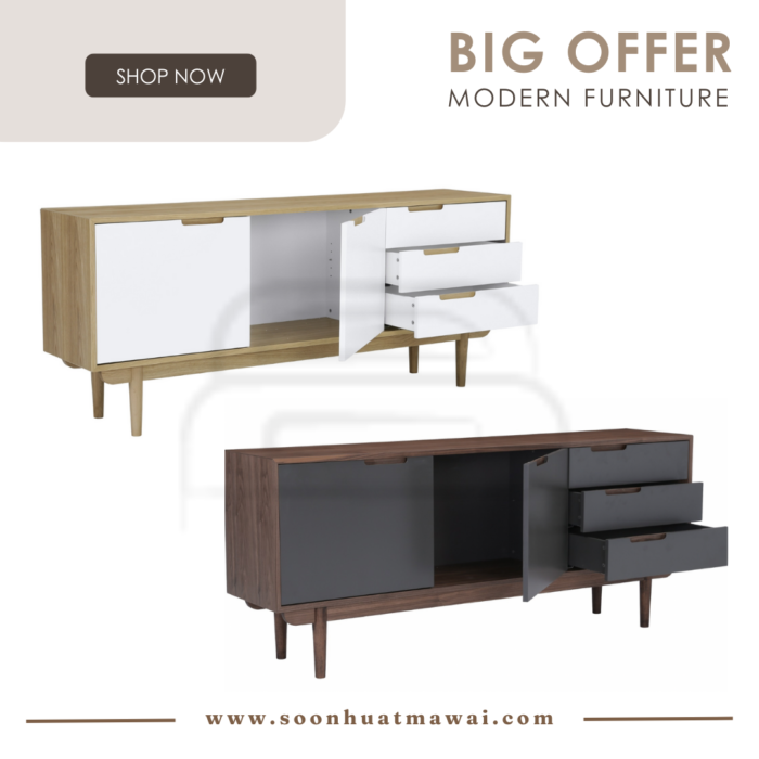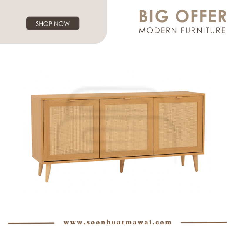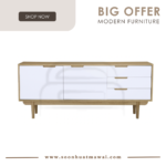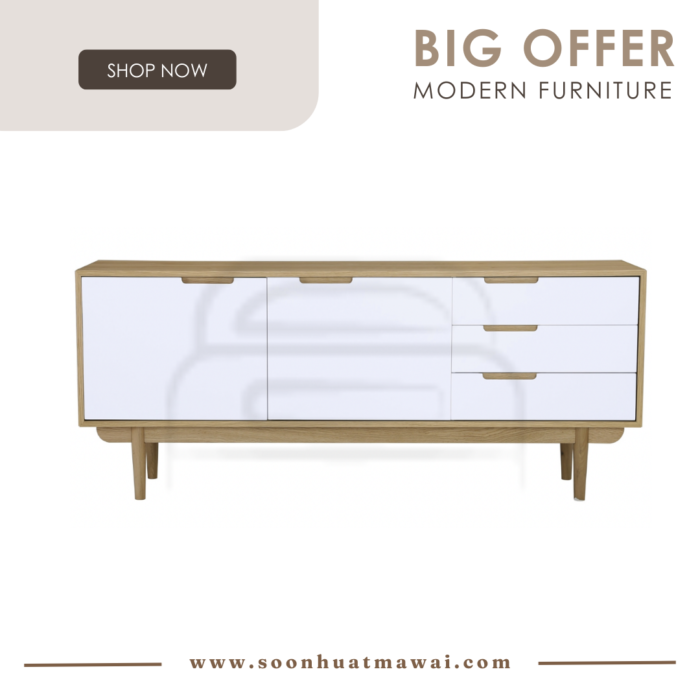 Nakula 1.8M Sideboard in Natural colour body, White colour door with Natural colour leg