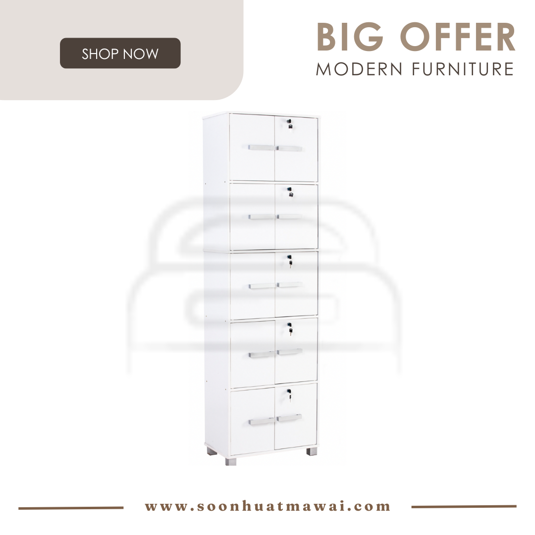 NAOMI 10 DOOR STORAGE BOX WITH LOCK WHITE