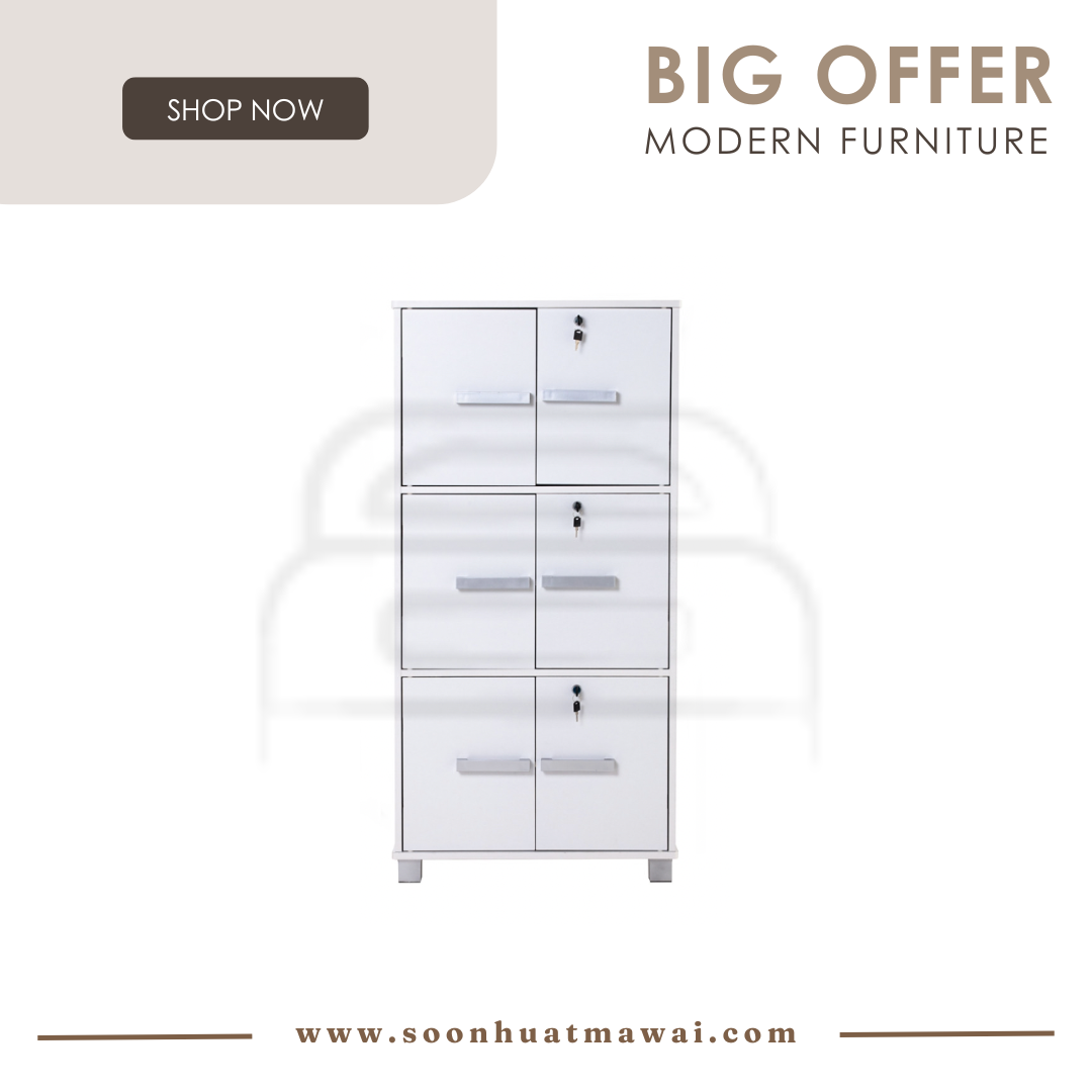 NAOMI 6 DOOR STORAGE BOX WITH LOCK WHITE