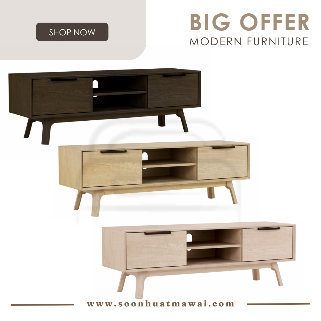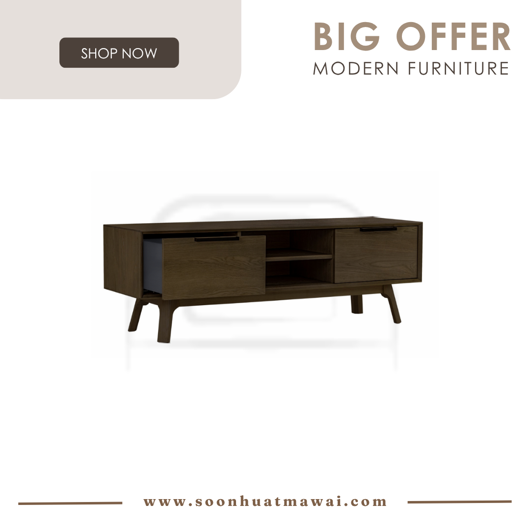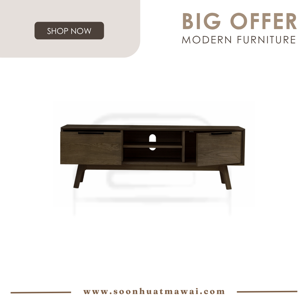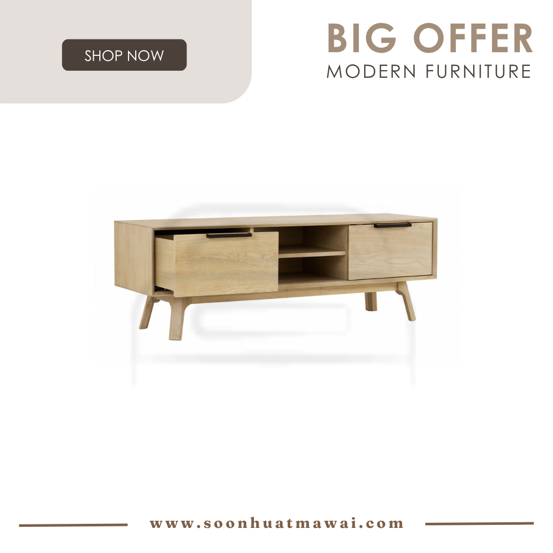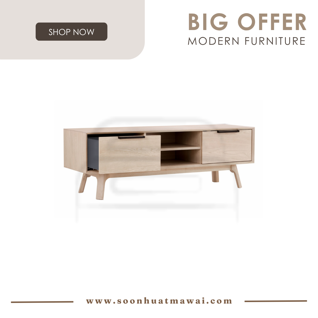 Noud 1.5M TV Cabinet in Oak veneer body, with Oak leg
