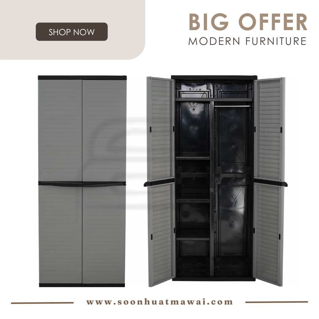 Optimus multi purpose cabinet with Black colour body, Grey colour door