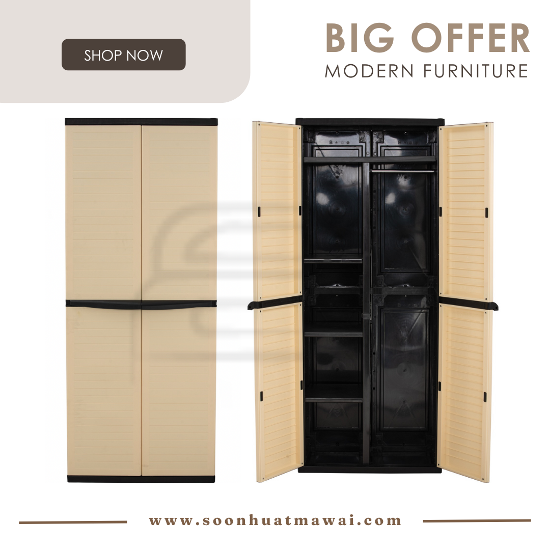Optimus multi purpose cabinet with Black colour body, Beige colour door