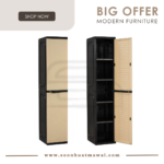 Optimus slim storage cabinet with Black colour body, Beige colour door