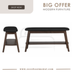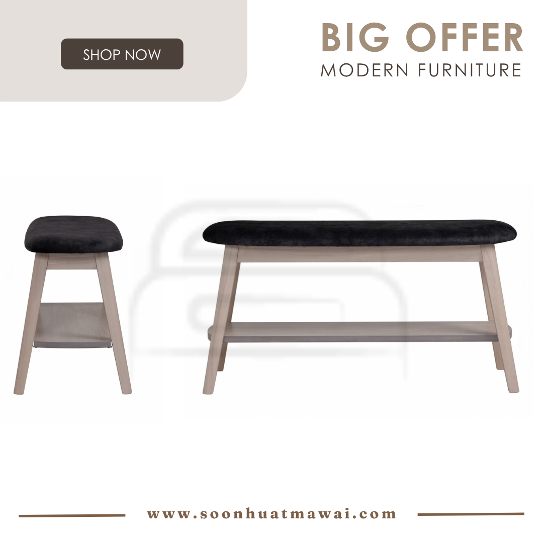 Ozel 0.9m Bench with White Wash colour leg, Black colour Arctus fabric