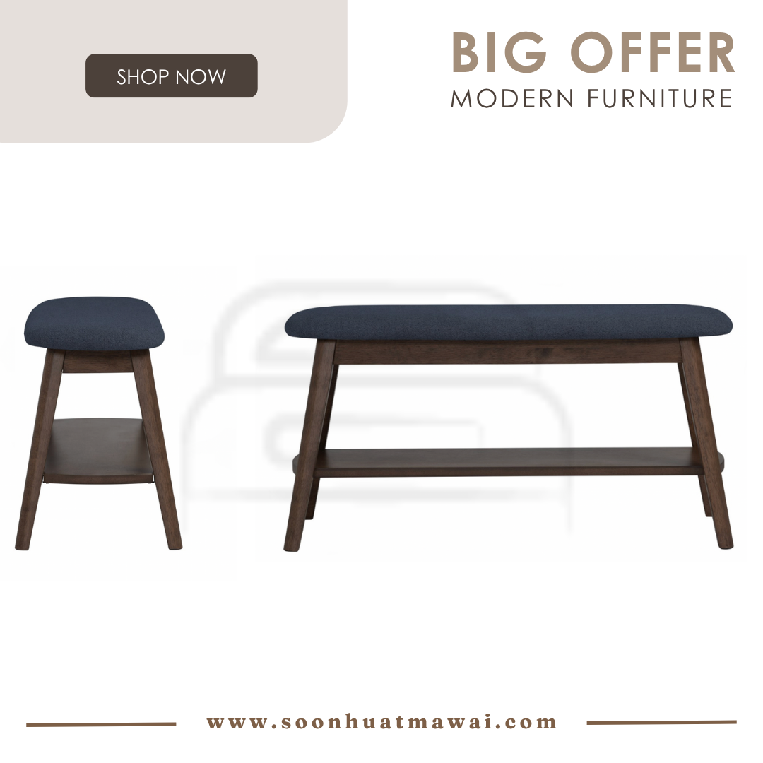 Ozel 0.9m Bench with Cocoa colour leg, Navy colour Challis fabric.
