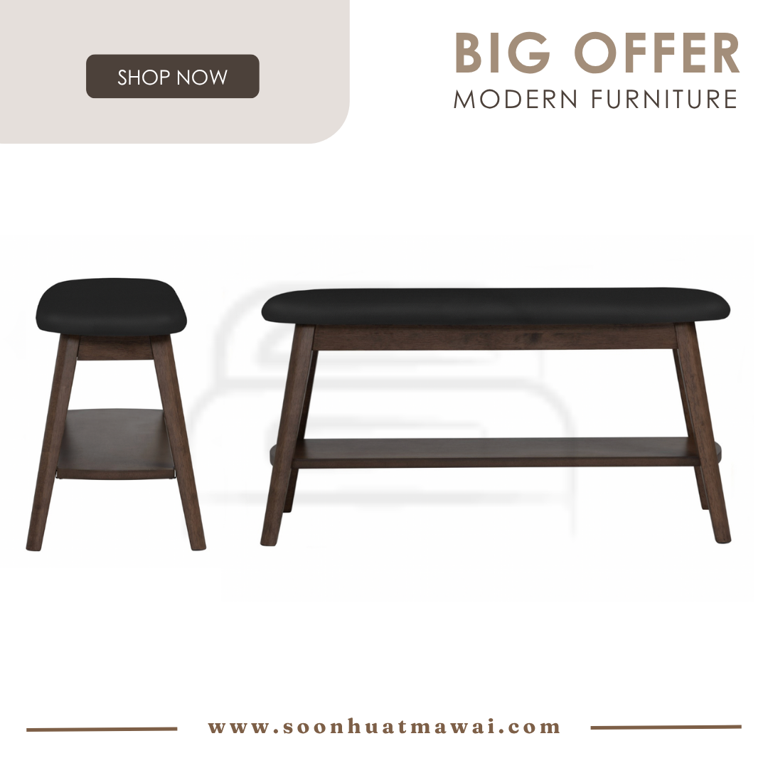 Ozel 0.9m Bench with Cocoa colour leg, Espresso colour Premium Vinyl.