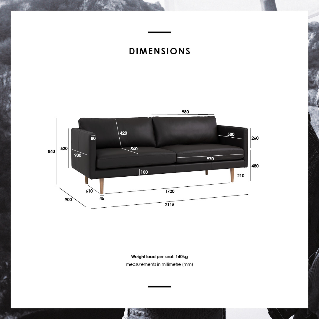 Raptor 3 seater sofa with Natural colour leg, Dark Brown colour Aniline Leather