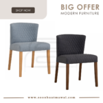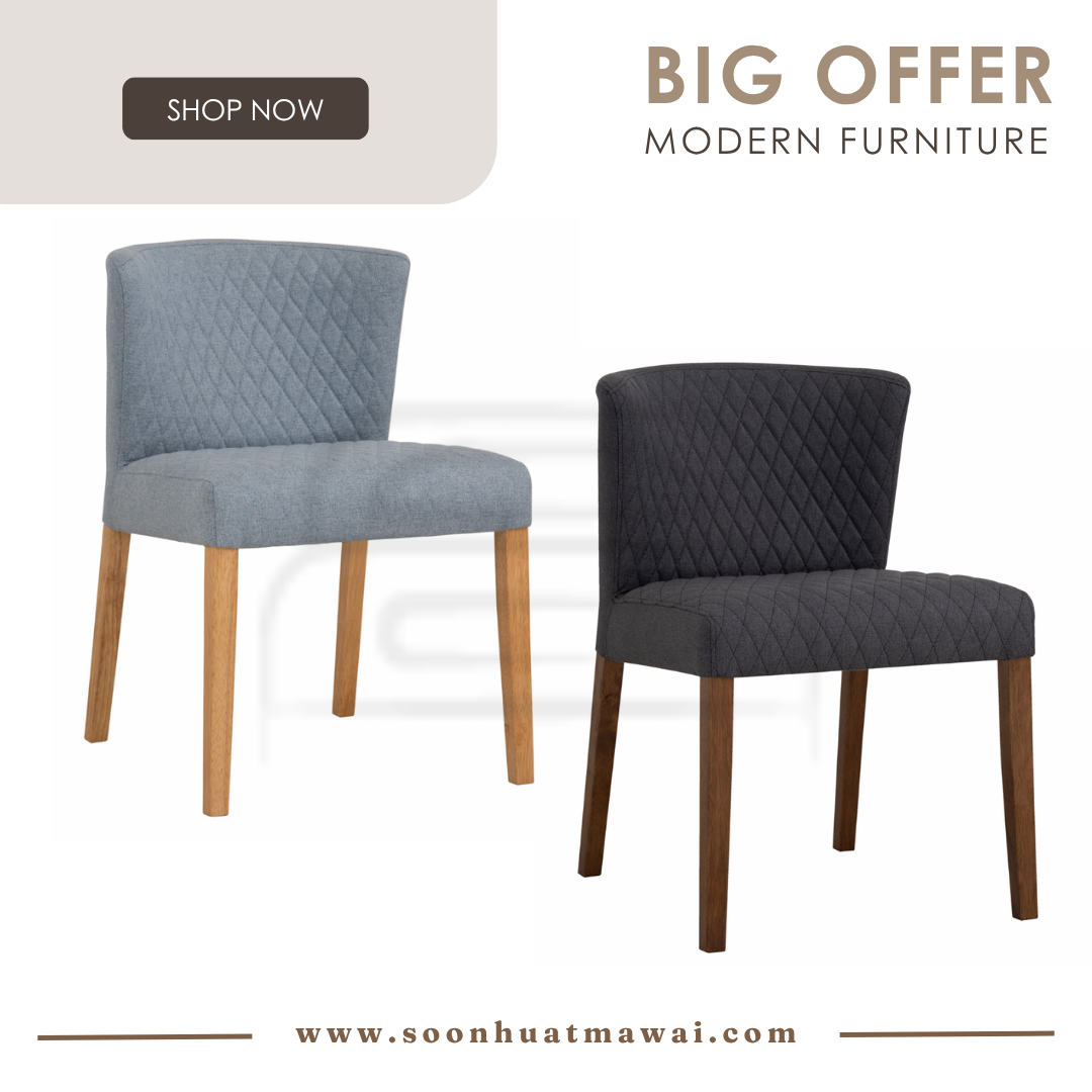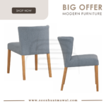 Rhoda dining chair with Cocoa colour leg, Hale Blue colour Double fabric seat & back